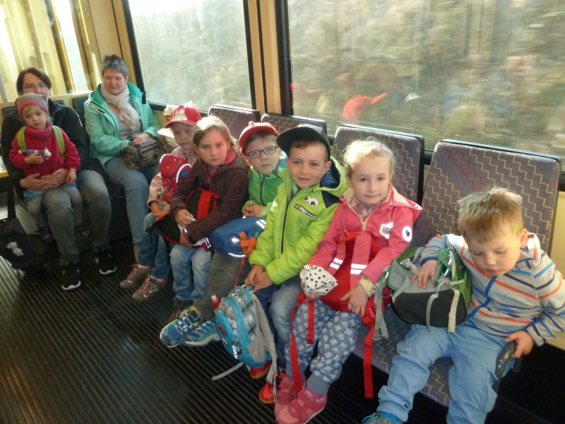 | Die Jungen und Mädchen des Regenbogenkindergartens unternahmen zusammen mit den Leiterinnen einen Ausflug zum „Theater aus dem Köfferchen“ in die Herrenberger Volkshochschule. Dieses Erlebnis hatten sie als Gutschein im letztjährigen Adventskalender stecken, und für manches Kind war schon die Zugfahrt ab Schopfloch ein erstes Abenteuer. Die Aufführung „Irgendwie Anders“ wurde von der Puppenspielerin Christine Kümmel gespielt und handelt von dem „Irgendwie Anders“, der sich, so sehr er sich auch bemüht wie die anderen zu sein, irgendwie anders ist, keine Freunde hat und ziemlich einsam lebt. Bis eines Tages ein seltsames „Etwas“ vor seiner Tür steht. Die Kinder waren fasziniert von den Figuren und Requisiten und der einfühlsamen Geschichte. Zum Schluss verabschiedeten sie sich noch persönlich von den Figuren, ehe es wieder in die Heimat ging. |