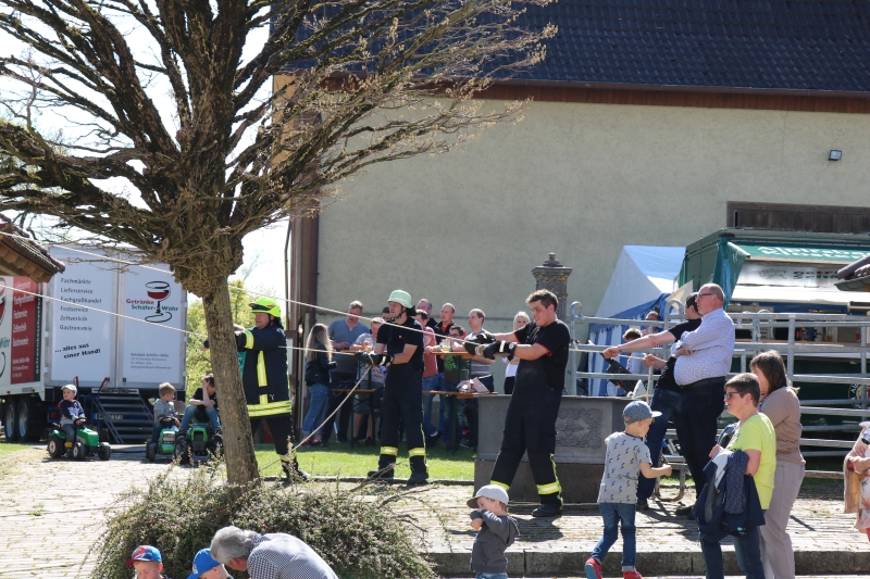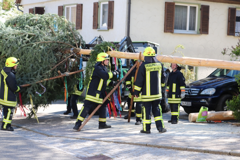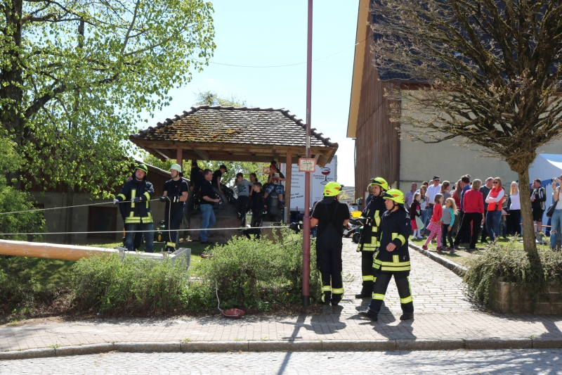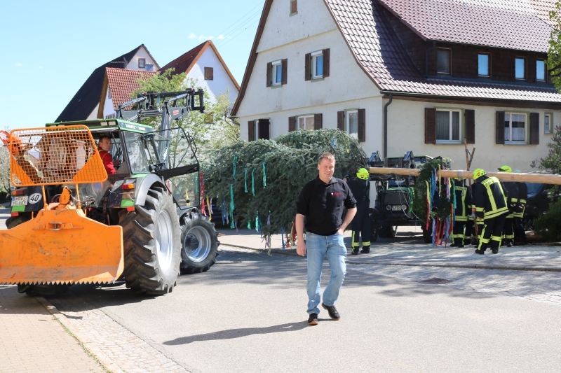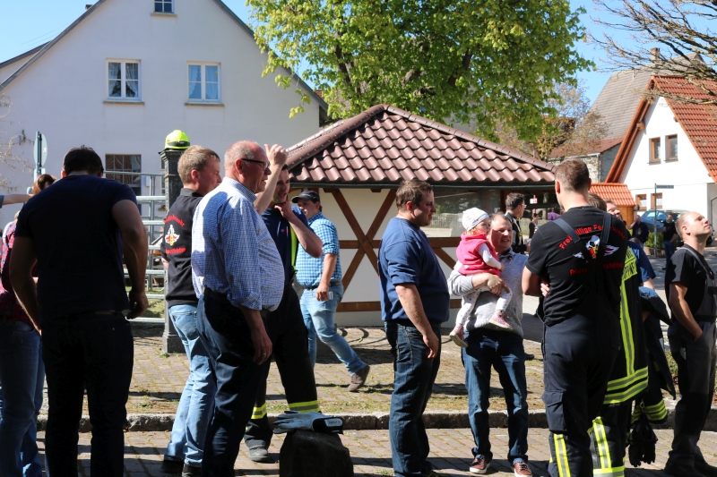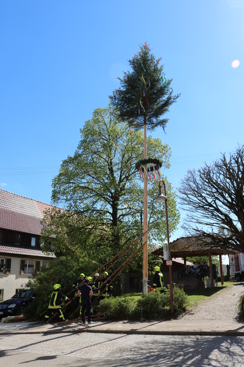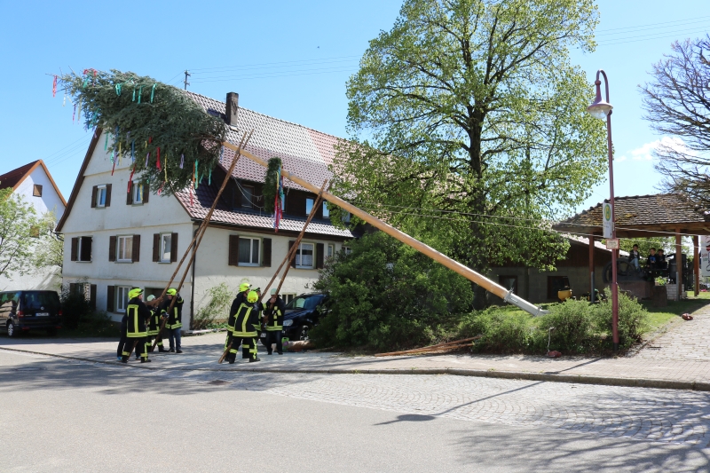 | Herrliches Frühlingswetter begleitete das Maibaum-Aufstellen durch die Freiwillige Feuerwehr Abteilung Dürrenmettstetten. Nach einem leckeren Mittagessen und köstlichem Kuchenangebot in der Dorfmitte, machten sich die Kameraden bereit, um rein durch "Feuerwehr-Männer-Kraft" den bunt geschmückten Maibaum aufzustellen. Eine schweißtreibende Arbeit, die mit reichlich Applaus der zahlreichen Zuschauer belohnt wurde. Lange saß man noch bei der Hockete zusammen, der eine oder andere statttete auch der "Hagen-Bar" im alten Hagenstall einen Besuch ab. |