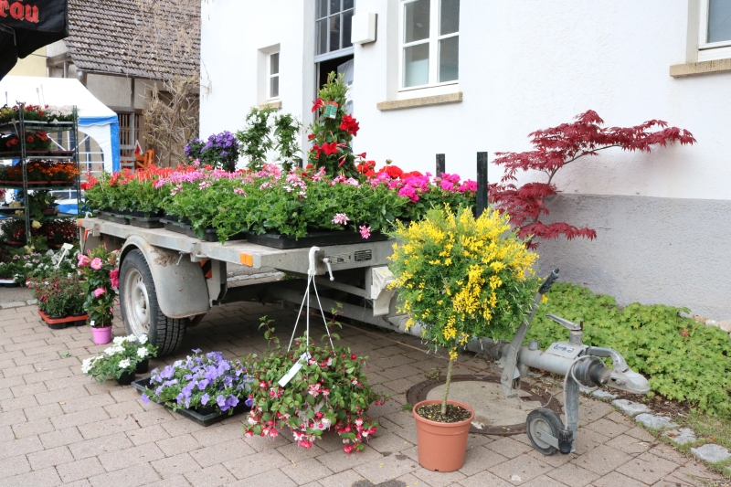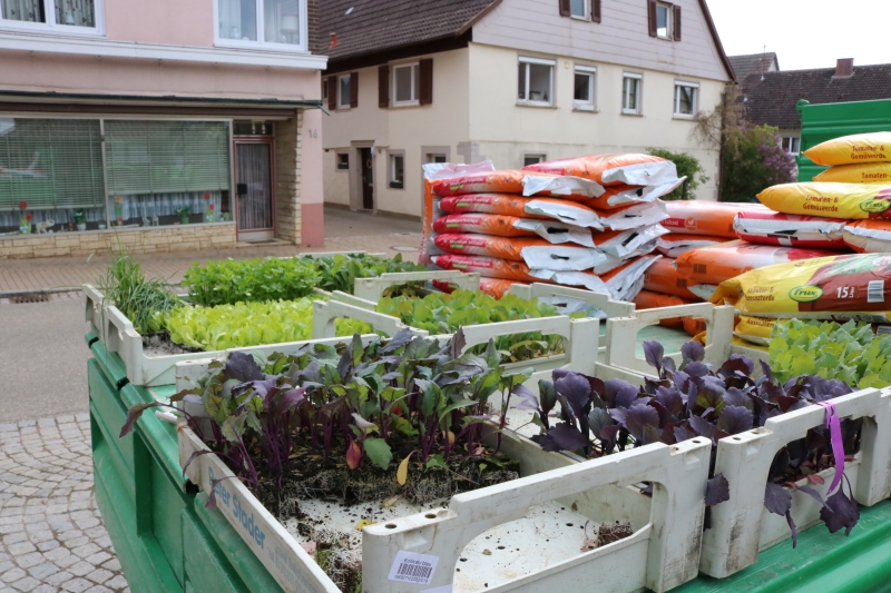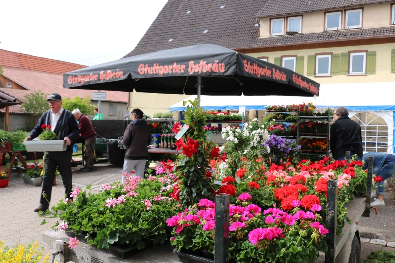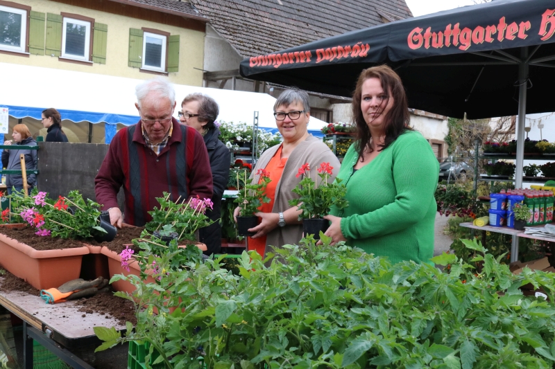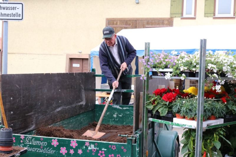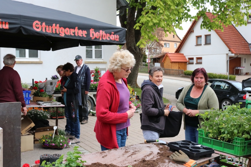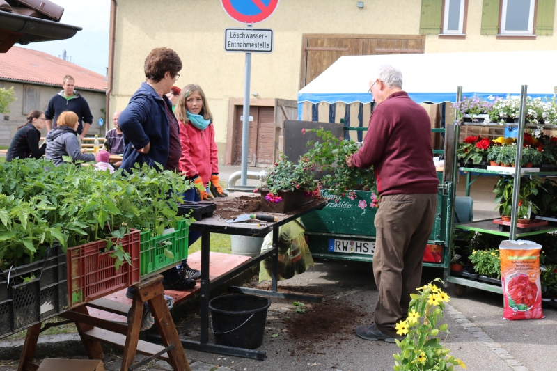 | Erstmalig hatten die Natur- und Wanderfreunde zu einem Fensterblümlesmarkt in die Dorfmitte eingeladen. Das von der Gärtnerei Schwarzwälder aus Sulz mitgebrachte Sortiment reichte von Pflanzen für Garten, Terrasse, Balkon und speziell für Blumenkästen bis hin zu Salatsetzlingen und Gemüsepflanzen. Wer seine Blumengefäße mitbrachte, dem wurden die Sommerblumen auch gleich eingepflanzt. Ganz ohne Stress und Hektik hatte jeder Besucher die Gelegenheit ausgiebig auszuwählen oder auch einen kompetenten Rat hinsichtlich des Pflanzen-Arrangements vom Gärtner zu bekommen. Kaffee, Kuchen und verschiedene Grillwürste bot der Verein zusätzlich an. Die Vorsitzende Steffi Jäkle zeigte sich mit dem Besuch des erstmals angebotenen Blümlesmarkt recht zufrieden, wenn auch das Maiwetter etwas wärmer hätte sein können. Doch bis die erworbenen Pflanzen Haus und Hof schmücken können, müssen sich die Besitzer noch ein paar Tage gedulden: Des Gärtners Rat war, die Eisheiligen noch abzuwarten - und diese enden erst mit der Kalten Sophie am 15. Mai. |