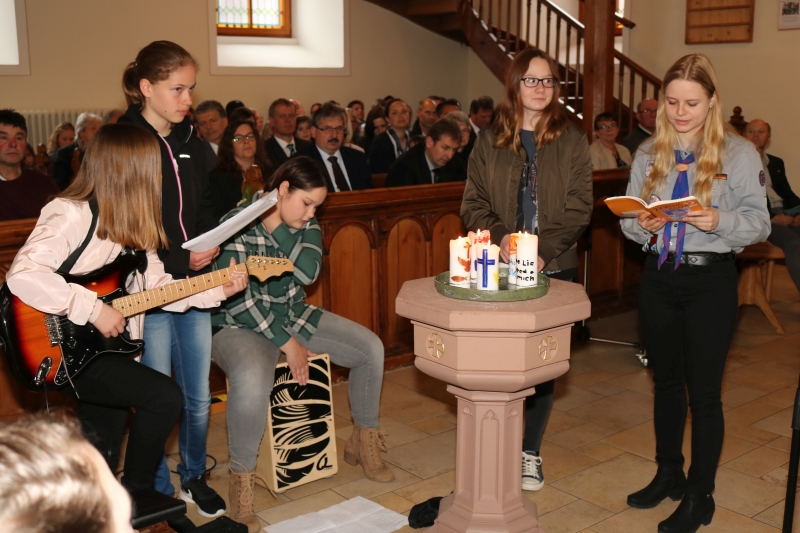| Mit einem festlichen „Highland Cathedral“ begrüßte der Posaunenchor Hopfau/Dürrenmettstetten neben den Besuchern auch die fünf Konfirmandinnen in der Dürrenmettstetter Kirche. „So wie ein Leuchtturm ein Orientierungspunkt sein kann, so ist das Kreuz die Orientierung im Leben“, gab Pfarrer Wolfgang Müller den jungen Menschen mit, bezogen auf das Gottesdienstthema „Glaubst du schon?“. Es sei nicht einfach, das richtige Leben zu finden, aber mit Gott an der Seite werde man reich gesegnet sein und ein erfülltes Leben haben, predigte Pfarrer Müller aus dem 5. Buch Mose. „Niemand könne heute überblicken, was noch kommt, doch den Weg mit Gott zu gehen, dazu sagt ihr heute „Ja“, sprach er vor der Einsegnung. Grußworte, Glückwünsche und Geschenke vom Verband der christlichen Pfadfinder (VCP), Jonas Weisser, und der Pfadi-Gruppe „Die Wölfe“ durch Ann-Kathrin Wössner, sowie von Kirchengemeinderat Otto Kraft, der die fünf Konfirmandinnen zur aktiven Gemeindearbeit einlud, schlossen sich an. |