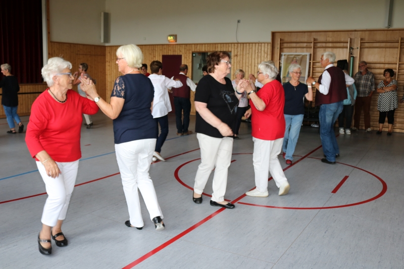 | Eine gelungene Premiere feierten die Sänger des Männergesangvereins „Eintracht“ am Samstag nicht nur mit ihrem ersten öffentlichen Auftritt nach eineinhalb Jahren, sondern auch mit dem neuen Dirigenten Manfred Wössner aus Lombach. Die Hockete sollte eigentlich in der Dorfmitte stattfinden, doch der Wetterbericht sagte kühles und regnerisches Wetter voraus. Die Verantwortlichen reagierten schnell und so wurde die Hockete kurzerhand in die Räume der Gemeindehalle verlegt. Was der guten Stimmung jedoch keinen Abbruch tat. Ebenfalls eingeladen war die Sulzer Seniorentanzgruppe „ErlebniSTanz“, die in verschiedenen Formationen zu passender Musik ihre Lebensfreude an der Bewegung zeigte. „Wir zeigen die andere Art zu tanzen“, ruft Tanzleiterin Claudia Bronner den Gästen zu und schon heißt es wieder „vorwärts, rückwärts, seitwärts, schließen“, was von den Frauen ab 65 Jahren aufwärts gerne befolgt wird. Von der Empore schallten anschließend die kräftigen Männerstimmen herunter und hießen die Besucher musikalisch schwungvoll „Willkommen“. Mit „Ei du Mädchen vom Lande“, dem „Schifferlied“ und dem „Warum bist du gekommen“ aus der Oper „Der Bajazzo“ sang die „Eintracht“ Altbewährtes aus ihrem Repertoire, zu dem auch der „Sonntagmorgen in den Bergen“, der „Württeberger Wei“, das „Bierlied“ und „Wir sind die Könige der Welt“ gehören. Mancher Fuß wippte mit, mancher summte mit, kurzum die zahlreichen Gäste erlebten eine gemütliche und unterhaltsame Hockete bis in die späten Abendstunden. „Wir werden nun immer wieder singen und Auftritte haben“, verkündete der stellvertretende Vorsitzende Martin Huß sichtlich erfreut darüber, dass sich der Männergesangverein nun wieder im Aufschwung befindet. Und bis zur Jahresfeier im November werde man neues Liedgut einstudiert haben, gab Huß bekannt. |