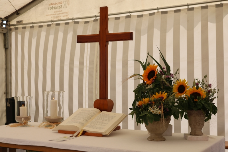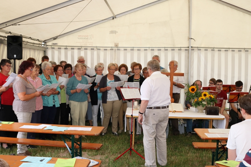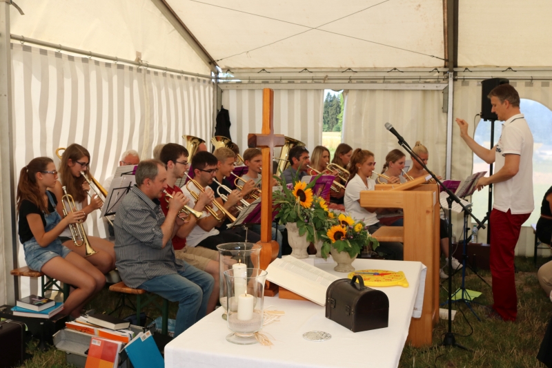 Gottesdienst im Grünen mit Ehrung langjähriger Posaunenchor-Bläser / 9.7.2017
