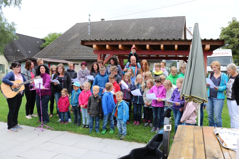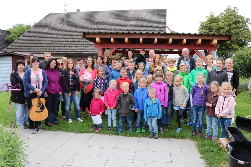 | Die Leiterin des Regenbogen-Kindergartens Silvia Weimer, wurde am letzten Tag bevor es in die Ferien ging, verabschiedet. Laut Gemeinderatsbeschluss wird die wöchentliche Betreuungszeit ab dem nächsten Kindergartenjahr auf 22,5 Stunden reduziert. Ganz sang- und klanglos wollten die Eltern die Leiterin aber nicht gehen lassen, „da hast du dich getäuscht“, meinte Ortsvorsteher Robert Trautwein schmunzelnd zu Silvia Weimer. Ein ganzer Chor hatte sich eigens dazu im Garten aufgestellt, sogar die größeren Kinder, die Weimer am Anfang noch als Kindergartenkinder betreut hatte. Michaela Roggenstein an der Gitarre hatte das Lied „Ein Hoch auf uns“, das von Popsänger Andreas Bourani stammt, um getextet. Mit diesem gefühlvollen Song, bei dem dann auch mancher Tränen in den Augen hatte, verabschiedeten sie sich musikalisch von der Leiterin an ihrem letzten Tag. Im Namen der Gemeinde bedankte sich Trautwein mit Blumen, Pralinen und einem Sulzer Handtuch bei Silvia Weimer für ihre gute Zusammenarbeit mit den Eltern und ihr wohltuendes Wirken im Kindergarten. „Wir haben es nicht bereut, dass du vor sechseinhalb Jahren hier angefangen hast“, sagte der Ortsvorsteher, der sich gerne zurück erinnert, wie kreativ sich Silvia Weimer damals dem Gremium vorstellte. „Die Zeit ist wie im Flug vergangen, ich gehe ungern weg“, bekennt Weimer in ihren Abschiedsworten. Doch den Vorschulkindern gab sie das Versprechen, an der Einschulung im Herbst nochmals dabei zu sein. Die umtriebige Erzieherin wird das nächste Kindergartenjahr im Kindergarten in Holzhausen anfangen, zusätzlich bildet sie sich weiter zur Fachkraft für Musik und Rhythmik. Nach der dreiwöchigen Ferienzeit werden die Öffnungszeiten des Regenbogenkindergartens auf täglich viereinhalb Stunden reduziert. Die Erzieherinnen Petra Storz und Barbara Sturm betreuen dann neun Kinder. Sieben Kinder werden dieses Jahr eingeschult. |
