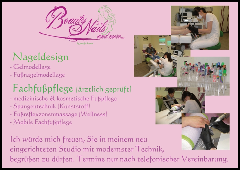 | Ein neues Studio für Fußpflege und Nageldesign hat Jennifer Rosner in der Hopfauer Str. 17 eröffnet. Mehr Informationen erhalten Sie unter www.beautynails-and-more.de |