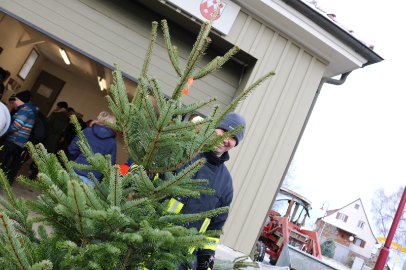 | Alle Jahre wieder....verkauften die Feuerwehrkameraden wunderschöne Christbäume vor dem Gerätehaus. Rund 75 Nordmannstannen fanden an diesem Vormittag ihren Besitzer. Die Kameraden konnten mit diesem Umsatz sehr zufrieden sein - und es gab auch dieses Mal wieder einen Glühwein oder einen heißen Punsch gratis zum Baum dazu. |