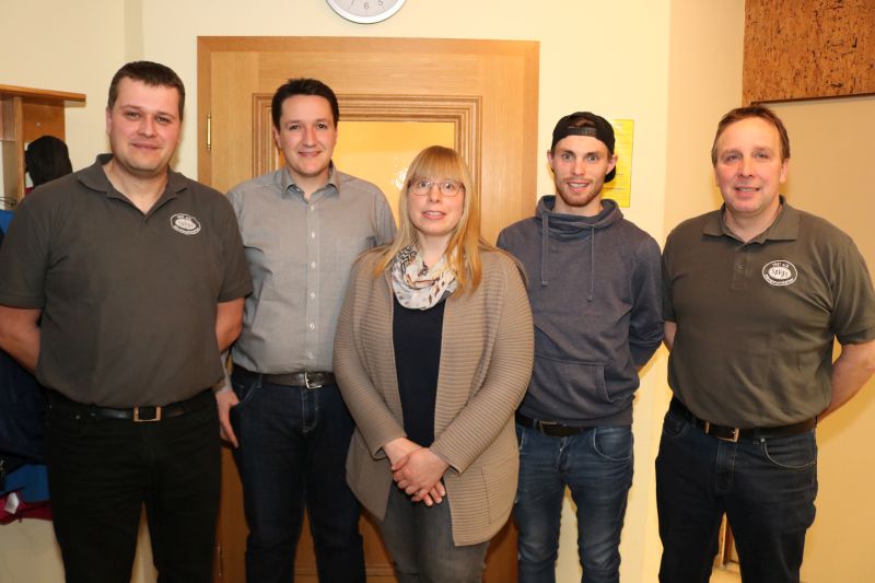 | Neu gewählt wurden Markus Lehmann, Damaris Maier und Tobias Wulzinger (ab Zweiter von links). Bestätigt wurden Holger Kraus (links) und Jörg Dölker (rechts). |