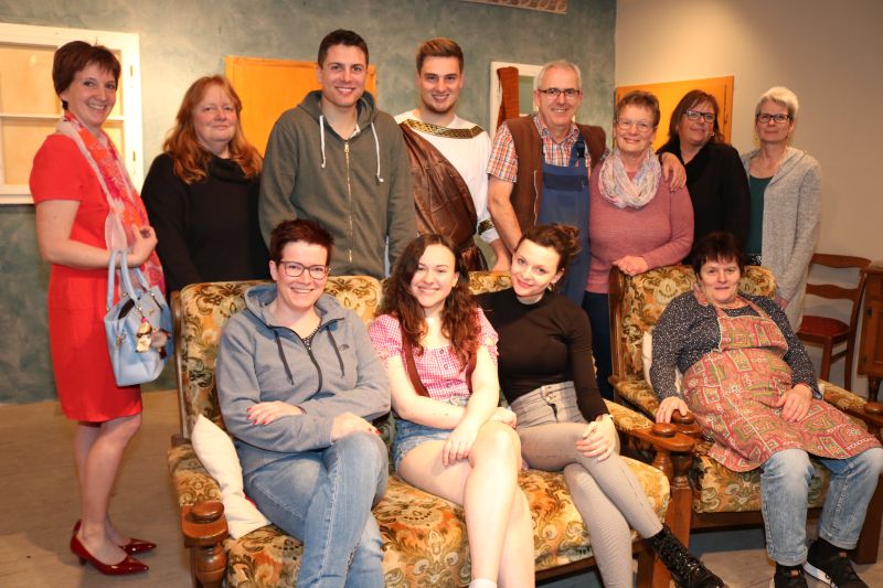 | Die Laienschauspieler garantieren für Lacherfolge: (hintere Reihe von links): Mirjam Kirschbaum, Jasmin Huß, Christian Wößner, Alexander Plicht, Ingo Herr, Elke Jäkle, Ute Dölker, Petra Rosner. Vordere Reihe, von links: Melanie Sattelberger, Julia Kraft, Rebecca Kraft und Heide Kraus. |