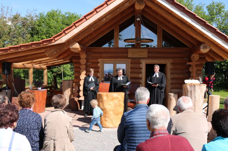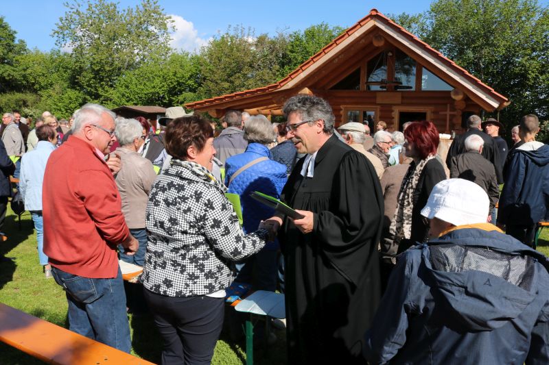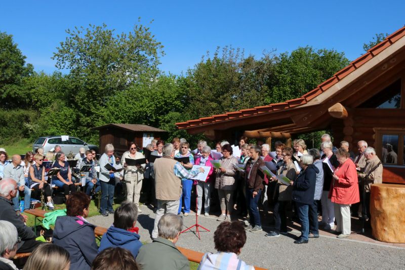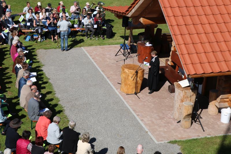 | Der Distriktgottesdienst am Hochfest Christi Himmelfahrt wurde mit zahlreichen Besuchern aus dem Nahbereich Sulz-Horb gefeiert. Die Blockhütte am Aussichtsturm in Dürrenmettstetten bot den idealen Platz für den Gottesdienst im Grünen. Dekan Ulrich Vallon bezeichnete diesen Gottesdienst als eine Premiere, da erstmalig Kirchgänger aus Sulz, Holzhausen, Horb, Dettingen, Mühlen, Hopfau und Dürrenmettstetten zusammengekommen sind. „Wir wollen aufstehen, aufeinander zugehen und lernen miteinander umzugehen“ war nicht nur als gemeinsam gesungenes Lied das Motto des Gottesdienstes, sondern wurde gleich auch in die Tat umgesetzt. War man erstmals aufgestanden und hatte seinem Nachbarn die Hand zur Begrüßung gereicht, entstanden schnell lockere Gespräche unter den Gottesdienstbesuchern. Das Zwiegespräch mit Pfarrerin Susanne Veith aus Horb und Pfarrer Johannes Unz aus Mühlen verdeutlichte mit allerlei Begriffen „alles hat seine Zeit“. Die Worte machten nachdenklich, denn im Leben hat immer alles seine zwei Seiten, dies könne man besonders in der Begegnung feststellen. „Am Anfang muss umgegraben werden“ verdeutliche Susanne Veith. In dieser wichtigen Phase kämen Widerstände und Ängste zum Vorschein. Dieses „Umgraben“ sei trotzdem sehr wichtig, betonte Johannes Unz. Nachdem Horb, Dettingen und Mühlen schon als Nahbereich zusammengeschlossen wurden, verbinde man sich nun auch mit der Verbundkirchengemeinde Sulz-Holzhausen. „Wir verlieren Mitglieder, es wird hier und da etwas gestrichen“, daher müsse überlegt werden, wie es mit der Kirchenarbeit weitergehen könne, erklärte Unz. Nicht nur der Posaunenchor setzte sich mit Bläsern aus den Gemeinden Sulz, Vöhringen, Hopfau und Dürrenmettstetten zusammen, sondern auch der Kirchenchor bestand aus Sängern aus den vereinigten Gemeinden und begleitete musikalisch den Gottesdienst. Beim anschließenden Ständerling bot sich den Besuchern eine weitere Gelegenheit „aufeinander zu zugehen“, sowie bei einer einstündigen Pilgerwanderung mit Diakon Geoffrey Schwegler, zu der sich ebenfalls einige Wanderfreunde zusammenfanden. |