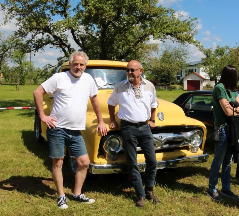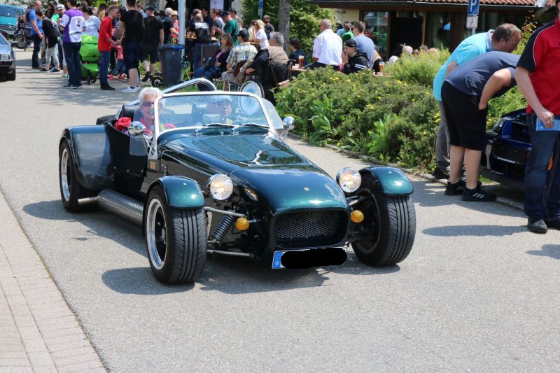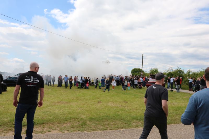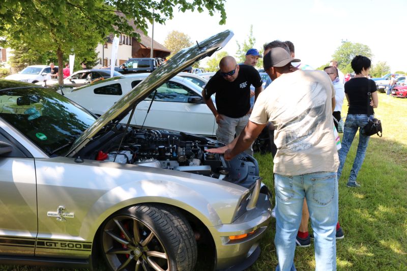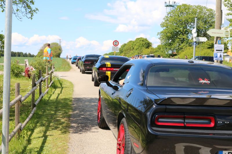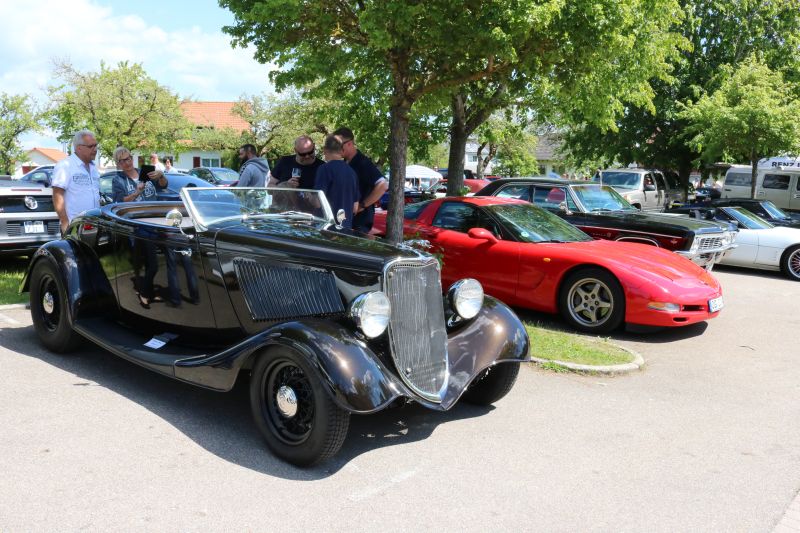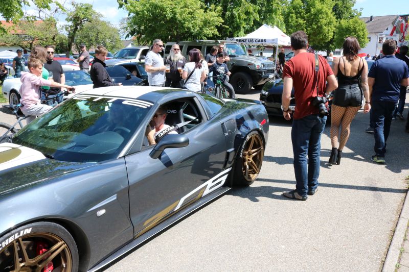 | DDas erste US Car Treffen in Dürrenmettstetten wurde zum vollen Erfolg. Organisator Roland Dölker rechnete mit über 1000 Besucher und lag mit dieser Einschätzung nicht schlecht, sogar aus der Schweiz reisten einige US-Car-Liebhaber an. Bis zum frühen Nachmittag hatte sich die Wiese unterhalb des Turms und der Platz vor der Gemeindehalle gefüllt mit zahlreichen Modellen der verschiedensten Automarken. Mustang, Corvette, Dodge, Pontiac Trans Am, Jaguar, Chevrolet waren neben herausgeputzten Hot Rod Oldtimern und sogar einem US-Police-Auto vertreten. Das Chrom blitzte nur so in der Sonne, die Besucher schlenderten durch die Reihen, Gespräche unter Fahrern und Interessierten fanden an jeder Ecke statt. Die US Car Fahrer hatten ihre Campingstühle aufgestellt und manches Fachgespräch fand unter der aufgeklappten Motorhaube statt. Für die großen und kleinen Besucher war auch der ausgestellte Caterpillar der Gebrüder Kaltenbach interessant, der im Dürrenmettstetter Steinbruch eingesetzt ist. Roland Dölker, selbst begeisterter US Car-Fahrer, hatte an alles gedacht. Streckenpersonal leitete die kurz vor Mittag aus allen Richtungen ankommenden Fahrer auf die ausgewiesenen Parkplätze, sodass der Gottesdienst am Aussichtsturm ungestört stattfinden konnte. Eine Betonplatte lag bereit für die nachmittägliche Burnout-Show. Dort ließen nacheinander fünf Fahrzeuge jeweils ihre Hinterreifen schnell und solange durchdrehen, bis dicke Rauchschwaden entstanden, was vom begeisterten Publikum mit Applaus entsprechend honoriert wurde. Die drei besten „Burnout-Fahrer“ erhielten einen Pokal. Ein Höhepunkt war sicherlich für den einen oder anderen Besucher, in solch einem Ami-Schlitten einmal mitzufahren. Für 5 Euro wurde dieser Traum mit einem „Charity-Ride“ Wirklichkeit, da der Betrag in voller Höhe an das DRK Sulz-Nord ging, die ebenfalls mit einem Stand vertreten waren. Mehrere Firmen säumten den „US Car-Highway“ entlang der Gemeindehalle und die Berater informierten über Autorvermietung sowie Tuning oder Zigarettenalternativen. Zwischendurch war immer der typische röhrige Sound eines V8 Motors zu hören. In der Gemeindehalle gab es tagsüber Mittagessen, während im Außenbereich amerikanische Hot Dogs oder Wurst und Steak vom Grill angeboten wurde. |