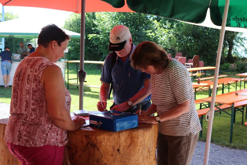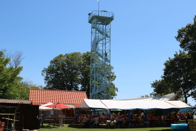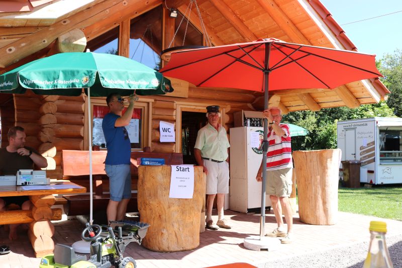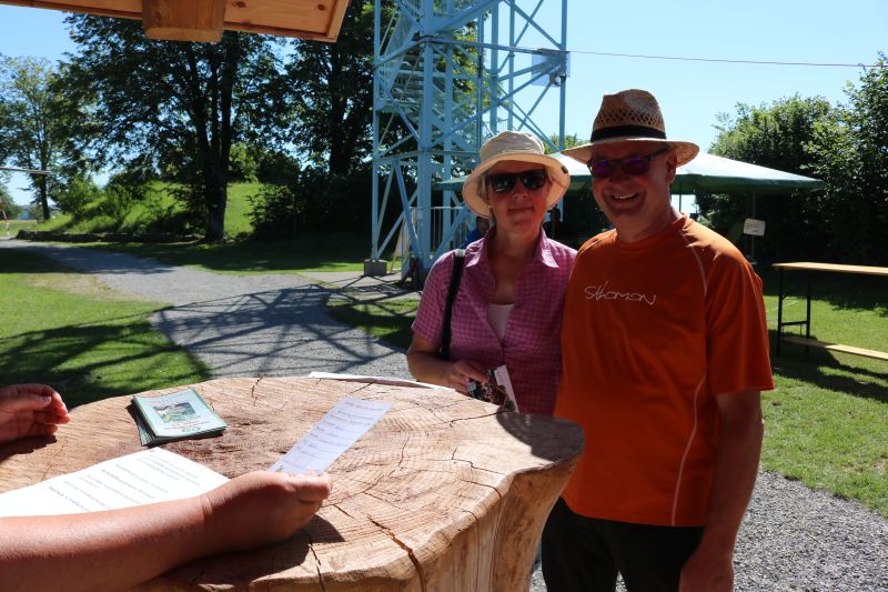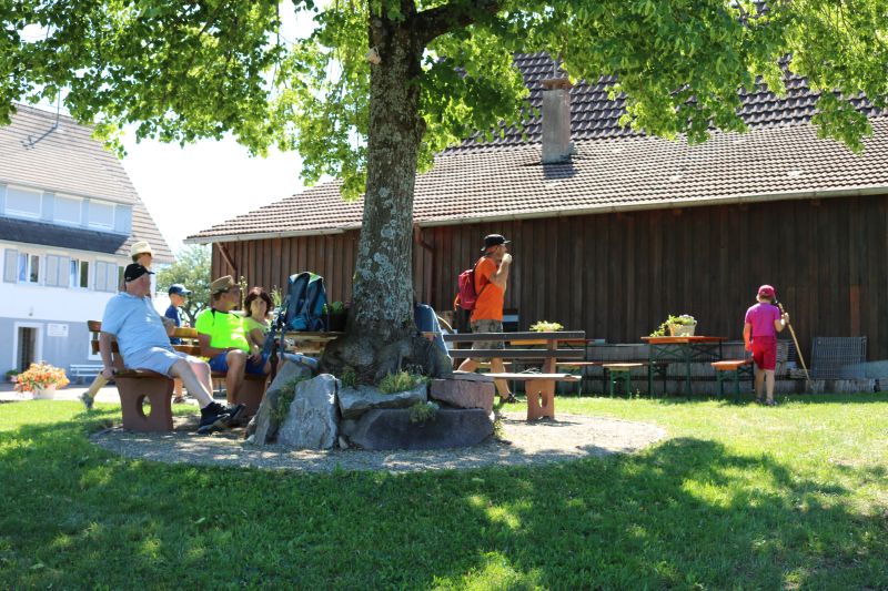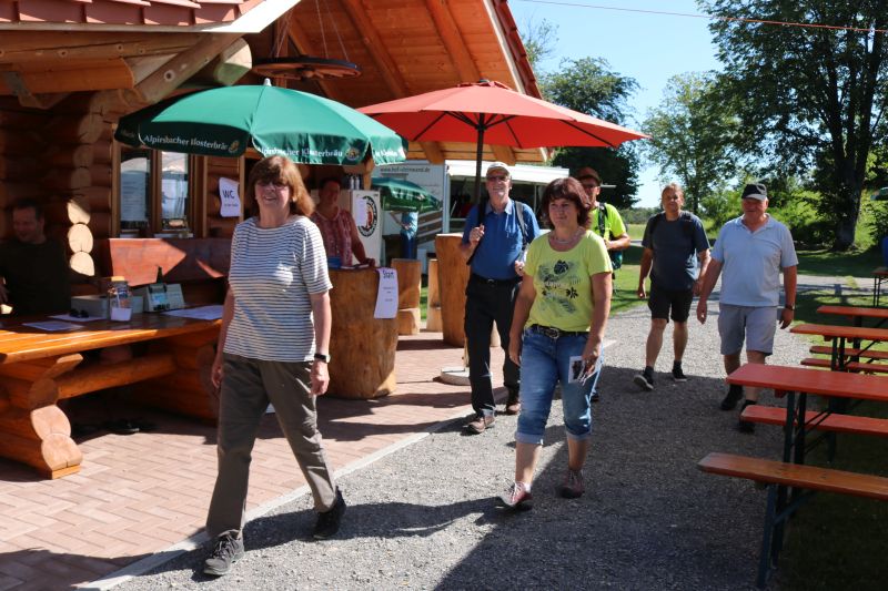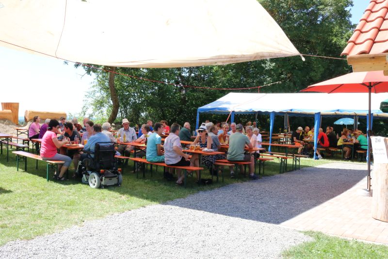 | Wer frühzeitig am Start war, hatte am Wandertag zum einjährigen Bestehen der Schutz- und Wanderhütte der Natur- und Wanderfreunde eindeutig die besseren Bedingungen. Schon kurz vor acht Uhr startete die erste Gruppe. Drei Wanderrouten standen zur Auswahl: die leichteste und familienfreundliche Tour mit 6,7 km, die mittelschwere mit 13,3 km sowie die „Ausdauertour“ mit 18,3 Kilometern Länge. Knapp 30 Grad herrschten schon frühmorgens, daher entschieden sich die meisten von den rund 60 Teilnehmern für die mittlere Tour. Der Wanderverein hatte bei seinen Vorbereitungen wirklich an alles gedacht. Genügend Beschattungen und Abkühlmöglichkeiten für Kinder gab es auf dem Platz vor der Blockhütte. Für die Wanderer waren Selbstbedienungsstationen mit Obst und Getränken eingerichtet, sowie auf jeder Route verschiedene Raststationen mit jeweiligem Essensangebot. Zu zweit, Familien mit kleinen Kindern und Gruppen mit vier bis sechs Personen aus den umliegenden Ortschaften wie Sulz, Bergfelden, Sigmarswangen, Dettingen und Dießen wollten sich die schönen Wanderwege rund um Dürrenmettstetten, dem höchstgelegenen Sulzer Stadtteil, nicht entgehen lassen. Um kurz nach zehn Uhr trafen die ersten frühzeitig gestarteten Wanderer wieder am Aussichtsturm ein. Viel Lob gab es von den Teilnehmern für die gut ausgeschilderten Wegweiser. Dass die Wanderrouten teilweise auch durch den Wald führten, wurde ebenso positiv empfunden. Mit den „Leinstetter Oldies“ und klang der „Jubiläumswandertag“ musikalisch aus. |