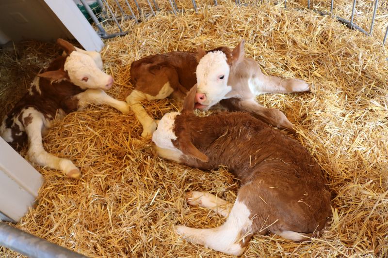 | Die drei gleichgroßen Bullenkälbchen sind hier gerade mal einen Tag alt und alle gesund |