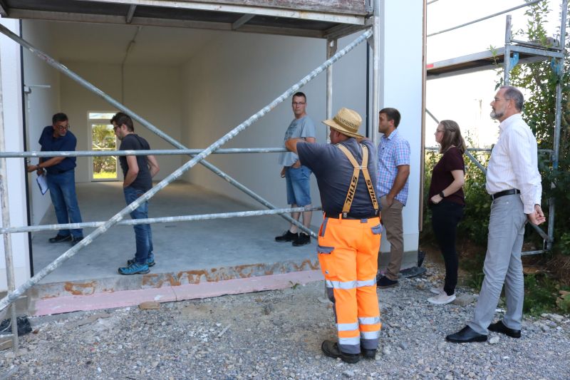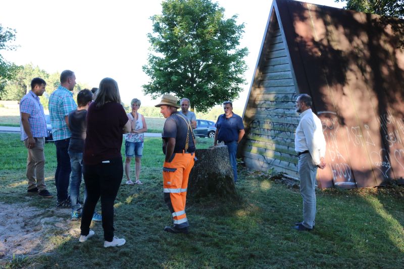 | Ein volles Programm bewältigte der neue Ortschaftsrat in seiner ersten Sitzung. Ortsvorsteher Siegfried Dölker begann mit einem Außentermin an der Gemeindehalle. Der dortige Anbau für die Feuerwehr und den Bauhof ist fast fertig gestellt, nur noch wenige Arbeiten wie Außenanstrich und Pflasterarbeiten stehen an. Dölker übergab an Kommandant Daniel Kirschbaum und Fronmeister Wolfgang Weigold die Schlüssel für das funkgesteuerte Tor mit eingebauter Tür. Zukünftig untergestellt werden soll der Schlauchwagen sowie der Mannschaftstransportwagen (MTW) und seitens des Bauhofs die Schneefräse, Sitzbänke und der Aufsitzmäher zum Überwintern. Ortschaftsrat Markus Steinwand regte an, vorab eine Bodenbeschichtung auf den Betonboden aufzubringen. Verschiedene Pflegemaßnahmen rund um den Anbau und auf der Hinterseite sind dringend notwendig, gab der Ortsvorsteher den neuen Räten mit auf den Weg, bevor im Herbst der Anbau bezogen wird. In einem Arbeitseinsatz werden die Räte die Grenzsteine, die vor dem Turm lagern, anderweitig umlagern. Der ebenfalls dort liegende Humus soll auf dem Zimmerplatz aufgebracht werden, da der ehemalige Altglascontainer-Standort nur geschottert ist. Der Fronmeister wird dann die Fläche einsäen. Das Gelände des Spielplatzes „Am Stättle“ wurde ebenfalls besichtigt. Hier werden die Räte ein Projekt starten, das eine Neubepflanzung, Sanierung der Florianshütte und eine Ausweisung von Parkplätzen beinhalten soll. Ortschaftsrätin Mirjam Kirschbaum verwies darauf, dass dieser Aussichtsplatz „der meist frequentierte Platz nach dem Turm sei und ansprechender gestaltet werden sollte. Auch sei die Parksituation am Straßenrand durch die zahlreichen Besucher sehr gefährlich. Der aufgeschüttete Splitt auf dem Friedhofsparkplatz wird weggeräumt. Schöner sei der Platz vor der Leichenhalle nach der ehrenamtlichen Reinigung eines Bürgers geworden. Die Anschaffung von Sitzkissen wäre angebracht, waren sich die Räte einig. Der Edelsplitt unterhalb des Friedhofs soll anderweitig aufbewahrt werden. Besser seien Behälter, damit es ordentlicher aussähe, so die Meinung des Gremiums. Der Hintereingang der Leichenhalle müsste sauber gemacht werden, damit das Regenwasser besser abfließen und nicht mehr in die Halle reinfließen kann. Weiter ging es im Bürgersaal mit einer Abstimmung zur Weiterführung der Haushaltsanmeldungen. Siegfried Dölker informierte die neuen Räte über die schon teilweise im Juni festgelegten Anmeldungen. Ortschaftsrat Theo Trick sah dabei den mit 50000 Euro angesetzten Punkt „Ausbau Feuerwehr Gerätehaus“ als sehr wichtig an. Der neue Ortschaftsrat stimmte einstimmig der Aufnahme zu. Die Sitzungsprotokolle werden künftig von Mirjam Kirschbaum erstellt. Die Pflege von Wegen und Gehölzen übernehmen Annika Huß und Theo Trick, die als Ansprechpartner für die Bevölkerung zuständig sind. Damit soll eine bessere Betreuung der Wirtschaftswege und die Verkehrssicherheit gewährleistet sein. Die beiden Räte werden notwendige Aufträge direkt an Dienstleister vergeben und darüber dem Ortschaftsrat einen jährlichen Bericht abgeben. Den Einstieg in die Digitalisierung der Ortsverwaltung startet der Ortsvorsteher mit der Anschaffung technischer Geräte zur kabellosen Übertragung auf einen Wandbildschirm, dem das Gremium einstimmig zustimmte. Die festgelegte Klausel im Pachtvertrag mit dem Schotterwerk Kaltenbach sei äußerst weitsichtig von seinen Vorgängern beschlossen worden, lobte Dölker. Das derzeitige Guthaben von Schotter und Maschineneinsatz wolle man entsprechend ausschöpfen, war die Meinung des Gremiums. Der kostenlosen Überlassung der Gemeindehalle für einen Vortrag von Michael Kässer über seine Arbeit als Buschpilot in Madagaskar stimmte der Ortschaftsrat zu. Der Erlös der Veranstaltung, die am 23. November stattfindet, werde gespendet. Der Schwerlastverkehr auf der K5514 Richtung Oberiflingen müsse in der Geschwindigkeit gedrosselt werden, regte Markus Steinwand an. Die Situation auf der schmalen Kreisstraße, besonders bei Gegenverkehr und mit einem „ausgefransten“ Bankett, sei zu gefährlich, gab er zu bedenken. „Wir können für die Kreisstraße die Punkte nur aufnehmen“, gab Dölker zur Auskunft. Ortschaftsrat Reinhard Kießling meinte, dass hier entschiedener vorgegangen werden müsste, sonst habe man keine Chance, dass die Straße gerichtet werde. |