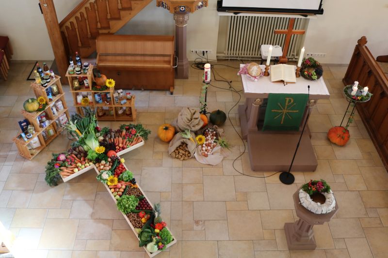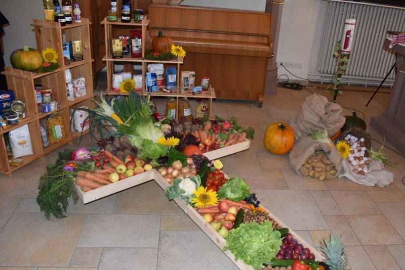 | Das kunstvolle Arrangement der Erntegaben. |