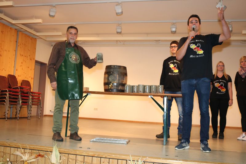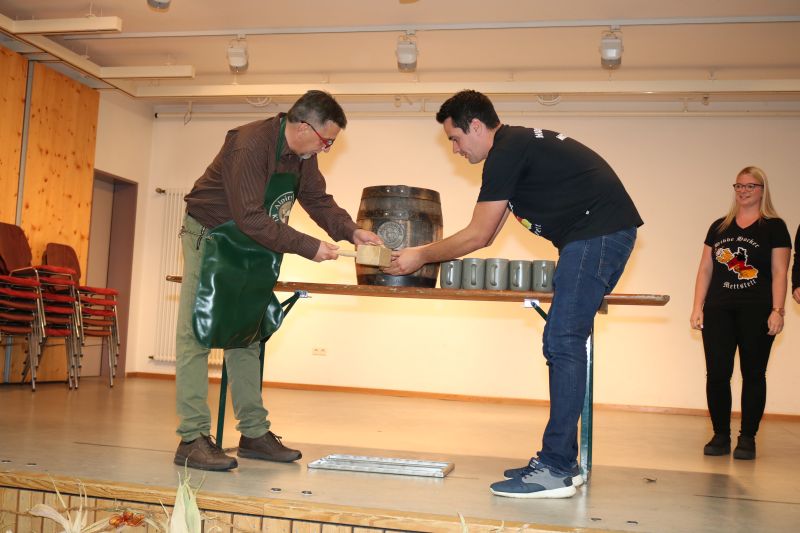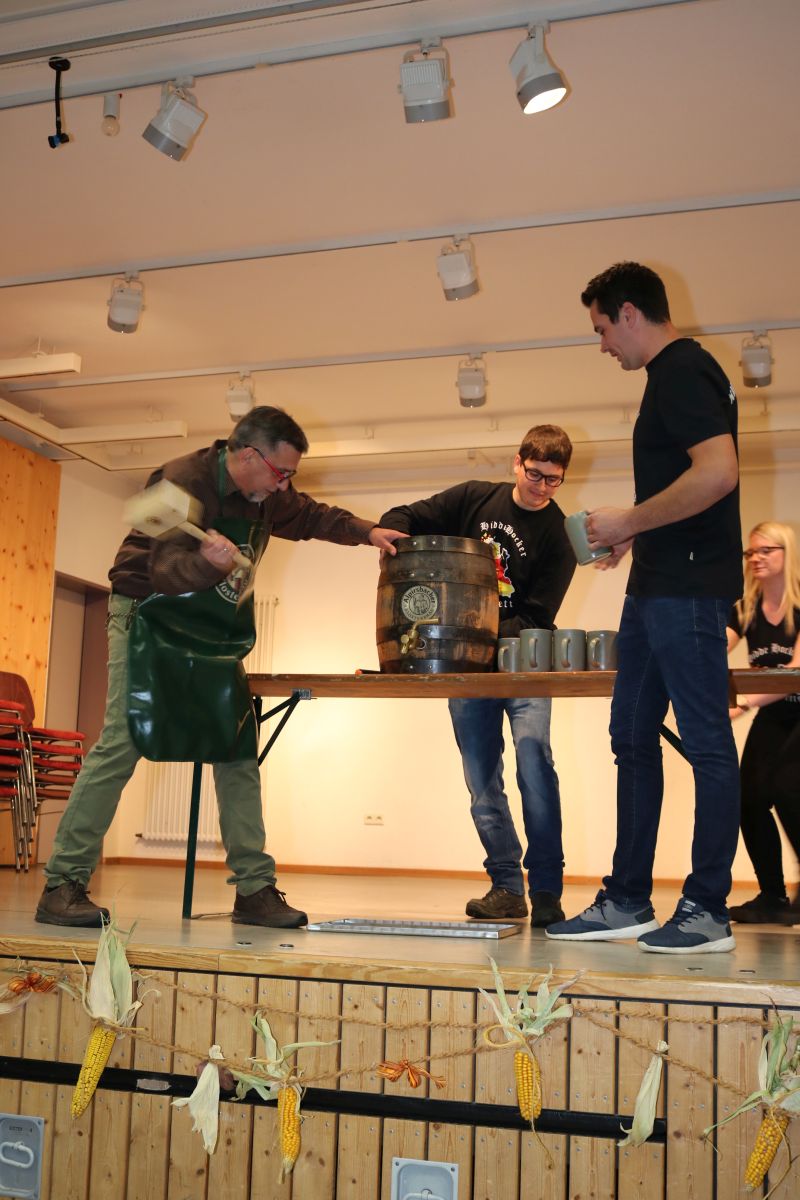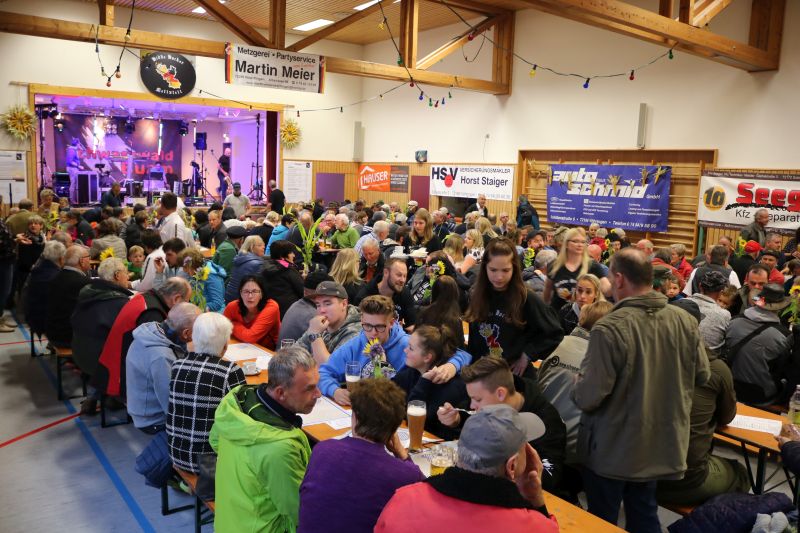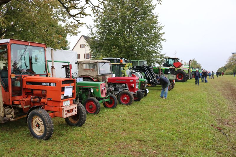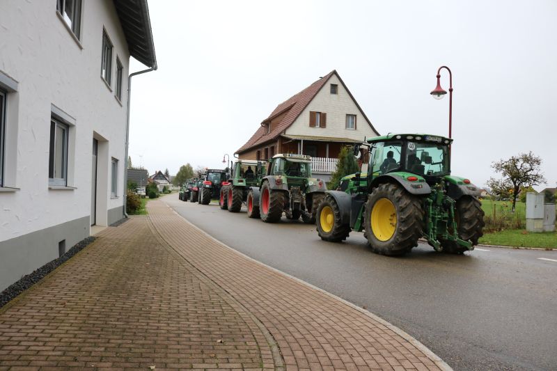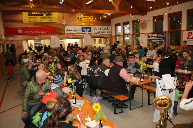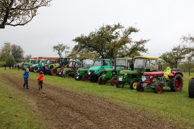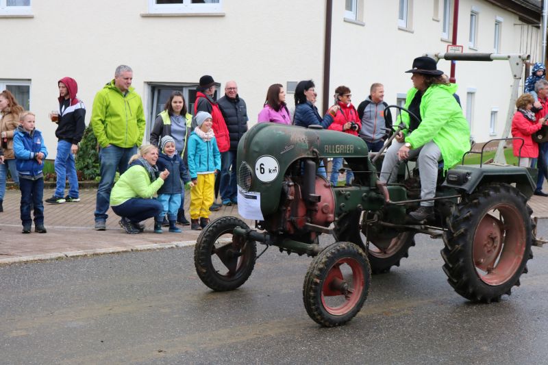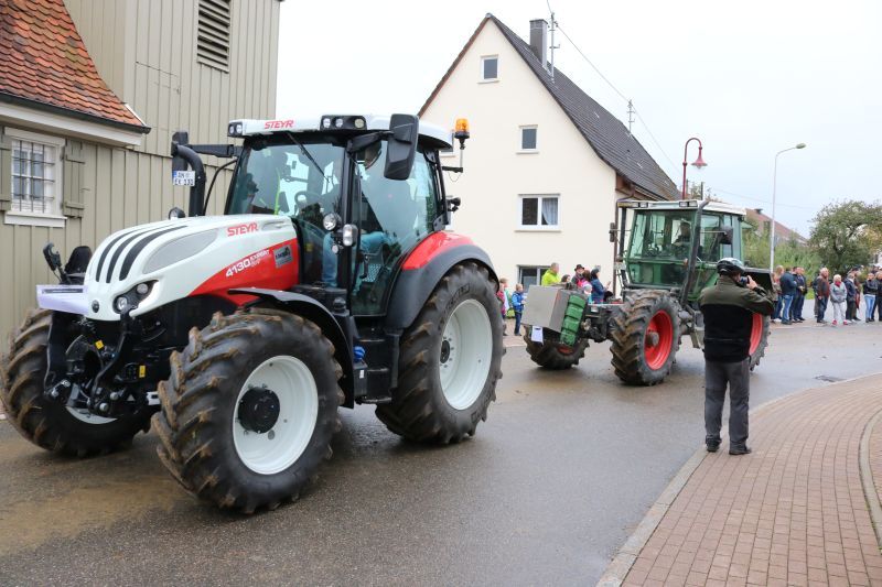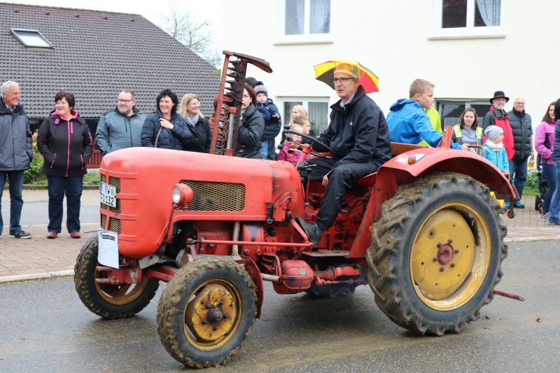 | Erstaunlich viele Fahrzeuge kamen zum ersten Schleppertreffen, das die Hiddehocker anlässlich ihres Jubiläums „35 Jahre Hiddehocker - 15 Jahre Verein“ organisiert hatten. Ortsvorsteher Siegfried Dölker schlug sich wacker bei seinem ersten Fassanstich in der Gemeindehalle. Drei Tage zuvor rockte als Jubiläumsauftakt die Cover-Rockband „Die Woodpeckers“. Der Vorsitzende der Hiddehocker, Lorenz Frey, hieß die zahlreichen Besucher in der Gemeindehalle zu einem weiteren Jubiläumstag herzlich willkommen. Daran, dass der Verein mittlerweile auf 70 Mitglieder angewachsen ist, sei sicherlich auch das alte Blechschild mit der Aufschrift „do hogged dia, dia emmer do hogged“, schuldig, dass schon in der alten Hidde hing, meinte Frey augenzwinkernd. Dass so ein großes Fest mit den Mitgliedern bewältigt werden könne, mache ihn stolz. Ortsvorsteher Siegfried Dölker erzählte rückblickend eine weitere Anekdote von einem alten Sofa, dass mit Auto und Anhänger in Salzstetten abgeholt werden sollte. „Auf der Heimfahrt sind alle Hiddehocker auf dem Sofa im Anhänger gesessen“, schmunzelte Dölker. „Ihr gehört zum Flecken dazu“, bestätigte er den Hiddehockern und übergab zwei Fässchen Bier als Geschenk der Ortsverwaltung. Ein paar Hammerschläge mehr brauchte es dann, um das Fass anzustechen und damit einen weiteren Festtag einzuläuten. Waren am frühen Nachmittag nur wenige Schlepper an der Gemeindehalle eingetroffen, so füllte sich der Platz kurz vor dem Start um 15.30 Uhr rasend schnell. Nach Dürrenmettstetten waren Traktorfahrer unter anderem aus Oberiflingen, Hopfau, Schopfloch, Weiden, Wittershausen, sowie die Zündkäpsele aus Leinstetten gekommen. 70 Schlepper jeglicher Art, mit Baujahrreichweite von 1955 bis 2019, von elf PS bis 330 Pferdestärken, verschiedene Größen und Modelle, standen in Reih und Glied auf der angrenzenden Wiese. Das Nieselwetter hielt die Fans der landwirtschaftlichen Maschinen jedoch nicht davon ab, die Oldtimer, Unimogs, Groß-Traktoren, teils mit angehängtem Silierwagen, genau unter die Lupe zu nehmen. Kurz nach 15.30 Uhr setzte sich der Zug in Bewegung, den der Vorsitzende Lorenz Frey auf seinem Fendt Geräteträger anführte, mit Ortsvorsteher Siegfried Dölker und einer Hiddehocker-Abordnung auf dem Anhänger. Die Umzugsstrecke führte über die Oberiflingerstraße, Am Rundblick, Dettingerstraße, Dorfstraße, Enslinstraße, Schalmenhagweg und zurück zur Gemeindehalle. Überall gab es Zuschauer, die sich diesen einmaligen Umzug nicht entgehen lassen wollten. „Das anvisierte Ziel 100 Schlepper zusammen zu bekommen, haben wir zwar knapp verfehlt“, so der stellvertretende Vorsitzende Vincent Wittig, „sicher ist jedoch, dass dies nicht der letzte Schlepperumzug gewesen ist“, bekräftigte er die gute Resonanz. Die Kapelle „Wellblech“ aus Hopfau unterhielt anschließend die Besucher mit schwungvoller Blasmusik, bei der fleißig mitgeklatscht wurde. |