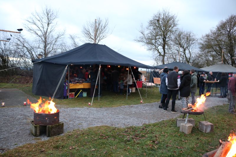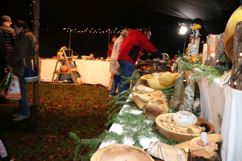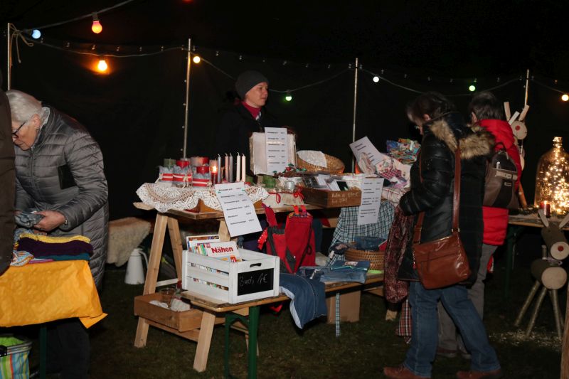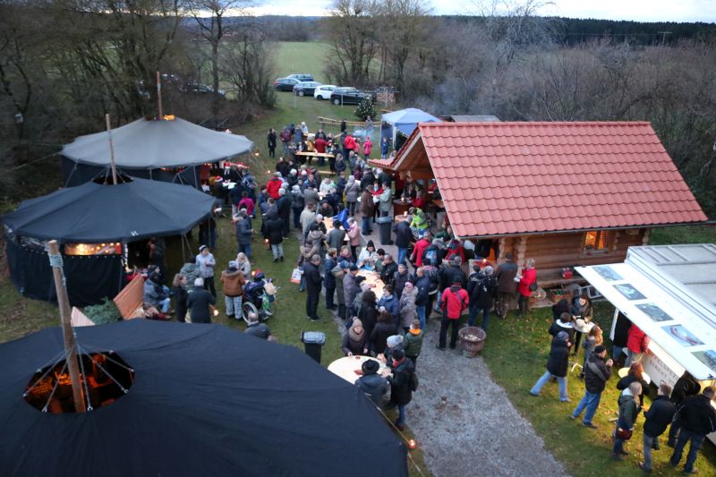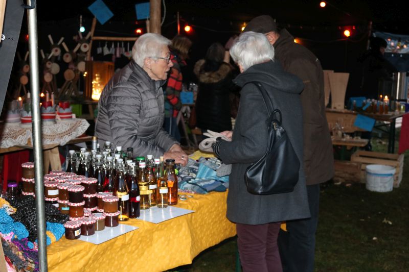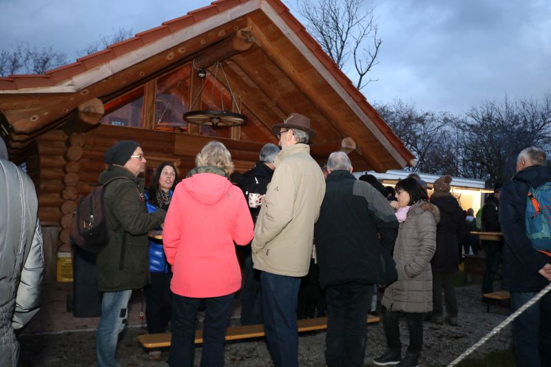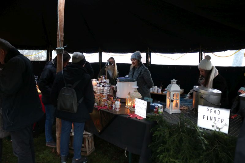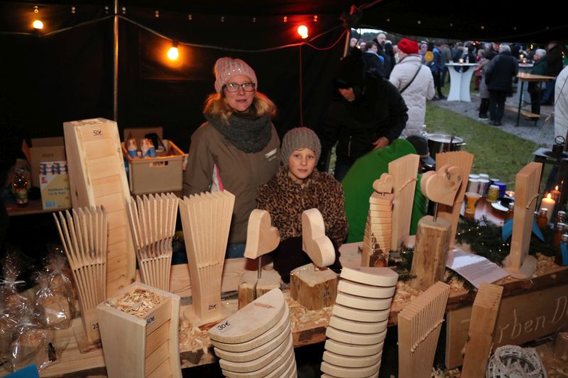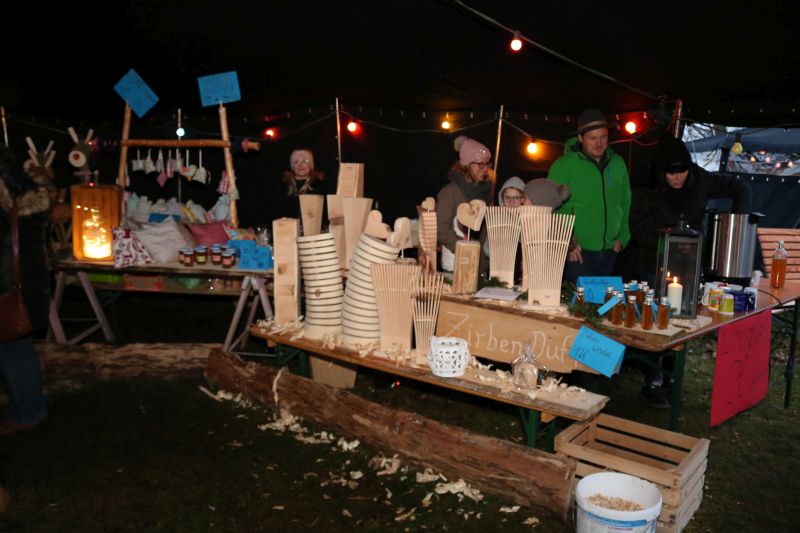 | Die Premiere des ersten Mettstetter Weihnachtsmärktle kann als äußerst gelungen bezeichnet werden. Unzählige Besucher tummelten sich am Nachmittag auf dem Platz zwischen Aussichtsturm und Wanderhütte. Die Idee der Natur- und Wanderfreunde, ein kleines, feines Märktle neben der neuen Schutz- und Wanderhütte entstehen zu lassen, erwies sich als goldrichtig. Das Angebot der Marktbeschicker bot pfiffige und kunstvolle Ware, sowie kulinarische Leckerbissen an. Da gab es den Marktwagen mit Spezialitäten vom Büffelhof und in den schwarzen Pfadfinder-Jurten wurden handgestrickte warme Socken und Schals angeboten. Stücke von alten Jeanshosen wurden originell umgearbeitet. Aus Beton gegossene Kerzenhalter, wunderschöne selbstgenähte Stoffbeutel in verschiedenen Ausführungen waren neben kleinen Holzbasteleien zu finden. Eigen hergestellte Schnäpse, Liköre, „kleine Geschenke aus der Küche“, die obligatorische Marktwurst, Tschai und Chili, Gulaschsuppe, heiße Getränke mit und ohne Schuss, Schupfnudeln, süße Waffeln und Schokofrüchte beherrschten mit ihren Düften das Marktgeschehen. Die Stände mit Töpfereien, Holzwerkeleien und Gedrechseltem ließen allerdings erkennen, dass hier echte Künstler aus dem Ort am Werk waren. Die Rentiere aus Holz mit unverkennbarer roter Nase waren auch recht schnell vergriffen. Mit verschiedenen Tischlerprodukten aus Zirbenholz und Lavendelduftsäckchen konnten wohlriechende Last-Minute-Geschenke ergattert werden. Vielerlei „Drechselkram“ offenbarte die Schönheit einer Holzmaserung in Apfel-, Zwetschen- oder in Birkenbäumen. Bei zunehmender Dunkelheit leuchtete der Aussichtsturm in verschiedenen Farben, während viele Kerzen den Weg säumten. Der Posaunenchor lud mit „Tochter Zion, freue dich“ zur Waldweihnachtsfeier der Pfadfinder ein. Ein beleuchteter Christbaum stand auf dem Platz, wo sich auch der Nikolaus einfand, der für sämtliche Sipplinge Lob und nur ein ganz klein bisschen Tadel in seinem Buch drinstehen hatte. Mit solch überwältigender Resonanz bei der ersten Veranstaltung dieser Art hatte der Wanderverein eigentlich nicht gerechnet, sagte die Vorsitzende Steffi Jäkle, die es „einfach überwältigend“ fand und der Eventmanagerin Marion Pfau ein großes Lob aussprach. Nach rund drei Stunden hieß es schon bei einem nach dem anderen „ausverkauft“. Doch der guten Stimmung auf dem kleinen Weihnachtsmärktle tat dies keinen Abbruch. Danksagung der Natur- und Wanderfreunde: Der Mettstetter Wanderverein, die Mettstetter Pfadfinder und die mitwirkenden Familien und Vereine möchten sich ganz herzlich bei allen Besuchern des 1. Mettstetter Weihnachtsmarktes bedanken. Mit so vielen neugierigen Menschen haben wir nicht gerechnet. Toll dass ihr alle da ward! Das macht uns Mut, diese Veranstaltung zu wiederholen. Wir wünschen euch allen ein tolles Jahr 2020! |