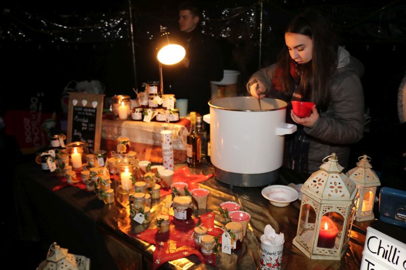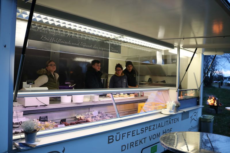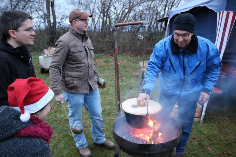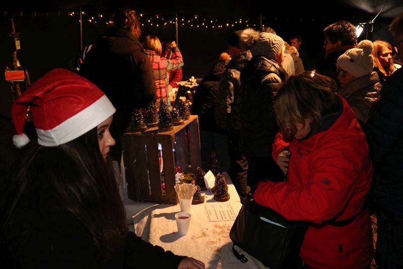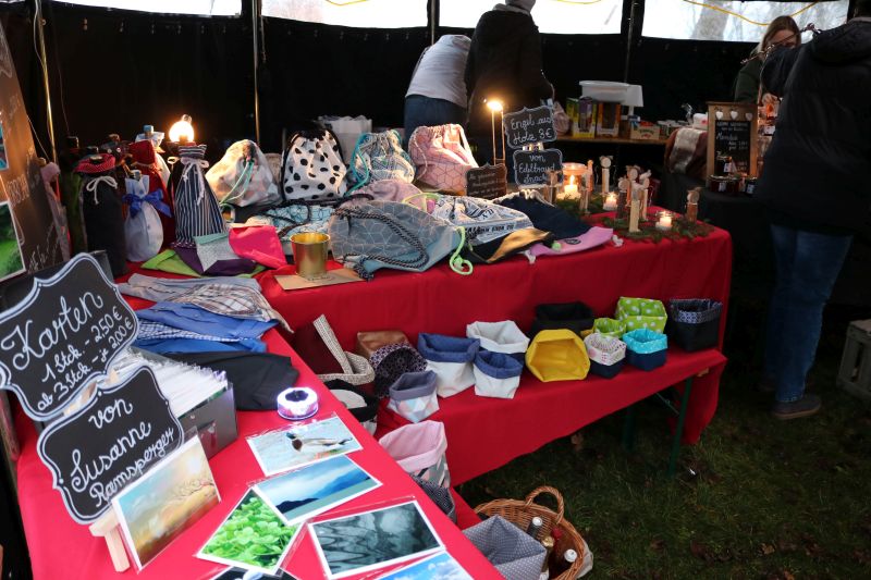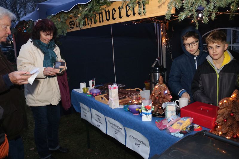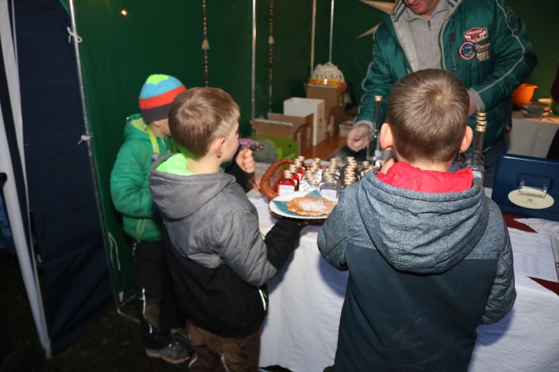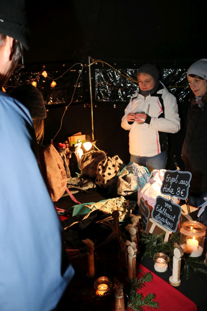 | Die Premiere des ersten Mettstetter Weihnachtsmärktle kann als äußerst gelungen bezeichnet werden. Unzählige Besucher tummelten sich am Nachmittag auf dem Platz zwischen Aussichtsturm und Wanderhütte. Die Idee der Natur- und Wanderfreunde, ein kleines, feines Märktle neben der neuen Schutz- und Wanderhütte entstehen zu lassen, erwies sich als goldrichtig. Das Angebot der Marktbeschicker bot pfiffige und kunstvolle Ware, sowie kulinarische Leckerbissen an. Da gab es den Marktwagen mit Spezialitäten vom Büffelhof und in den schwarzen Pfadfinder-Jurten wurden handgestrickte warme Socken und Schals angeboten. Stücke von alten Jeanshosen wurden originell umgearbeitet. Aus Beton gegossene Kerzenhalter, wunderschöne selbstgenähte Stoffbeutel in verschiedenen Ausführungen waren neben kleinen Holzbasteleien zu finden. Eigen hergestellte Schnäpse, Liköre, „kleine Geschenke aus der Küche“, die obligatorische Marktwurst, Tschai und Chili, Gulaschsuppe, heiße Getränke mit und ohne Schuss, Schupfnudeln, süße Waffeln und Schokofrüchte beherrschten mit ihren Düften das Marktgeschehen. Die Stände mit Töpfereien, Holzwerkeleien und Gedrechseltem ließen allerdings erkennen, dass hier echte Künstler aus dem Ort am Werk waren. Die Rentiere aus Holz mit unverkennbarer roter Nase waren auch recht schnell vergriffen. Mit verschiedenen Tischlerprodukten aus Zirbenholz und Lavendelduftsäckchen konnten wohlriechende Last-Minute-Geschenke ergattert werden. Vielerlei „Drechselkram“ offenbarte die Schönheit einer Holzmaserung in Apfel-, Zwetschen- oder in Birkenbäumen. Bei zunehmender Dunkelheit leuchtete der Aussichtsturm in verschiedenen Farben, während viele Kerzen den Weg säumten. Der Posaunenchor lud mit „Tochter Zion, freue dich“ zur Waldweihnachtsfeier der Pfadfinder ein. Ein beleuchteter Christbaum stand auf dem Platz, wo sich auch der Nikolaus einfand, der für sämtliche Sipplinge Lob und nur ein ganz klein bisschen Tadel in seinem Buch drinstehen hatte. Mit solch überwältigender Resonanz bei der ersten Veranstaltung dieser Art hatte der Wanderverein eigentlich nicht gerechnet, sagte die Vorsitzende Steffi Jäkle, die es „einfach überwältigend“ fand und der Eventmanagerin Marion Pfau ein großes Lob aussprach. Nach rund drei Stunden hieß es schon bei einem nach dem anderen „ausverkauft“. Doch der guten Stimmung auf dem kleinen Weihnachtsmärktle tat dies keinen Abbruch. Danksagung der Natur- und Wanderfreunde: Der Mettstetter Wanderverein, die Mettstetter Pfadfinder und die mitwirkenden Familien und Vereine möchten sich ganz herzlich bei allen Besuchern des 1. Mettstetter Weihnachtsmarktes bedanken. Mit so vielen neugierigen Menschen haben wir nicht gerechnet. Toll dass ihr alle da ward! Das macht uns Mut, diese Veranstaltung zu wiederholen. Wir wünschen euch allen ein tolles Jahr 2020! |